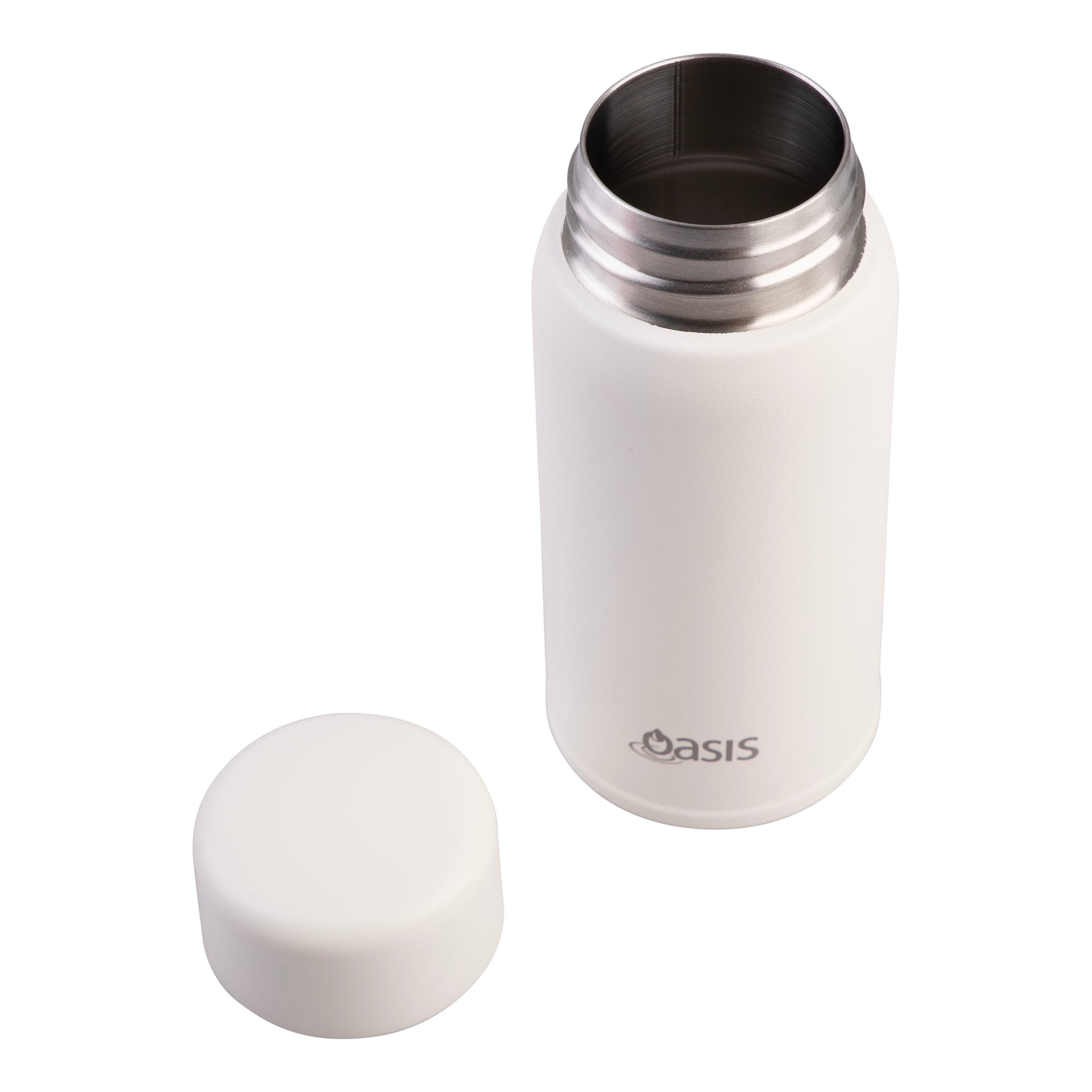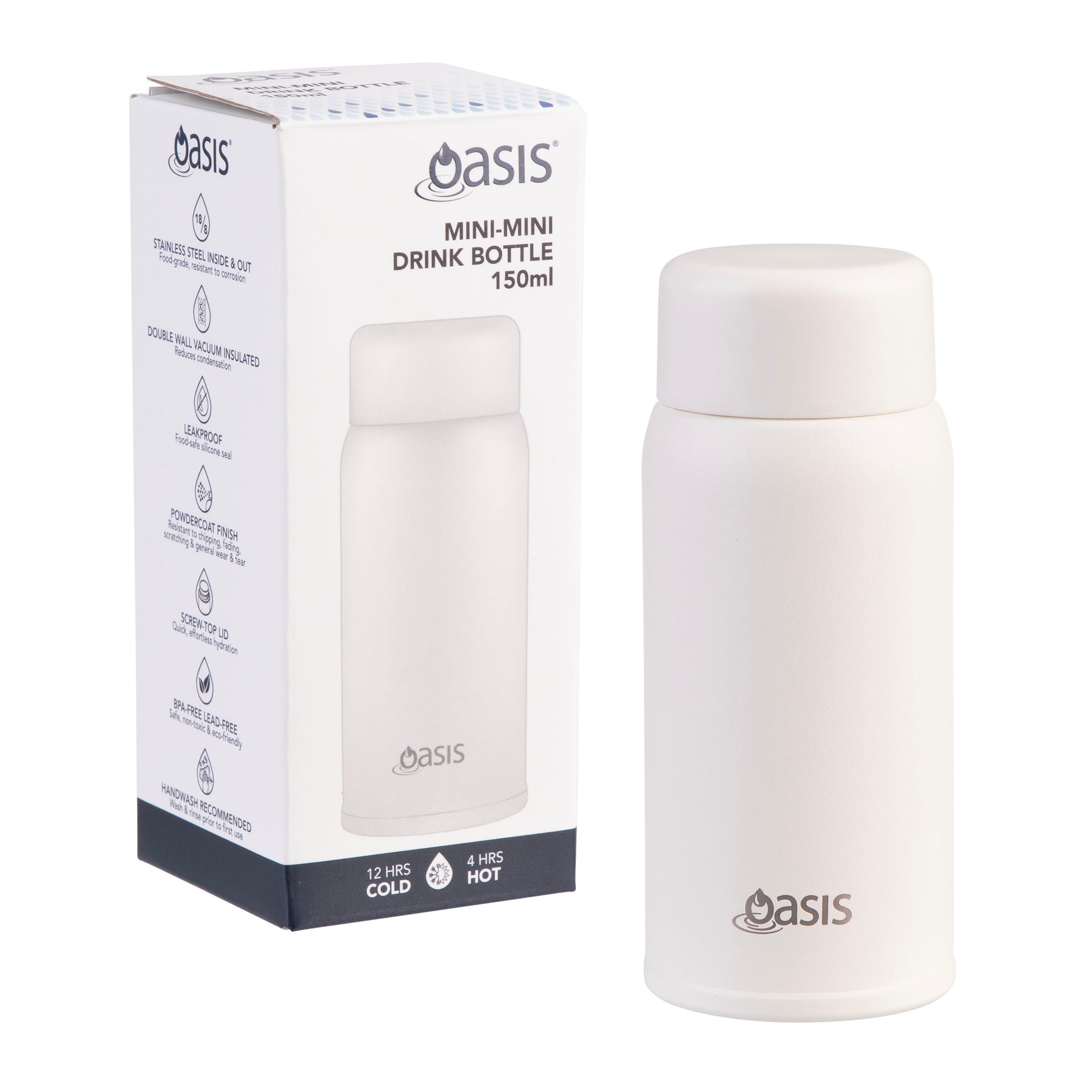 Small in size, big on performance. The Oasis Mini-Mini Drink Bottle is designed for convenience on the go, keeping your drinks at the perfect temperature in a sleek, compact form. Crafted from premium 18/8 stainless steel inside and out, it features double wall vacuum insulation to keep beverages cold for up to 12 hours or hot for up to 4. A durable powdercoat finish resists everyday wear, while the leakproof screw-top lid ensures worry-free hydration wherever you take it. With its minimalist design and eco-friendly construction, this bottle is the perfect pocket-sized companion for daily life.