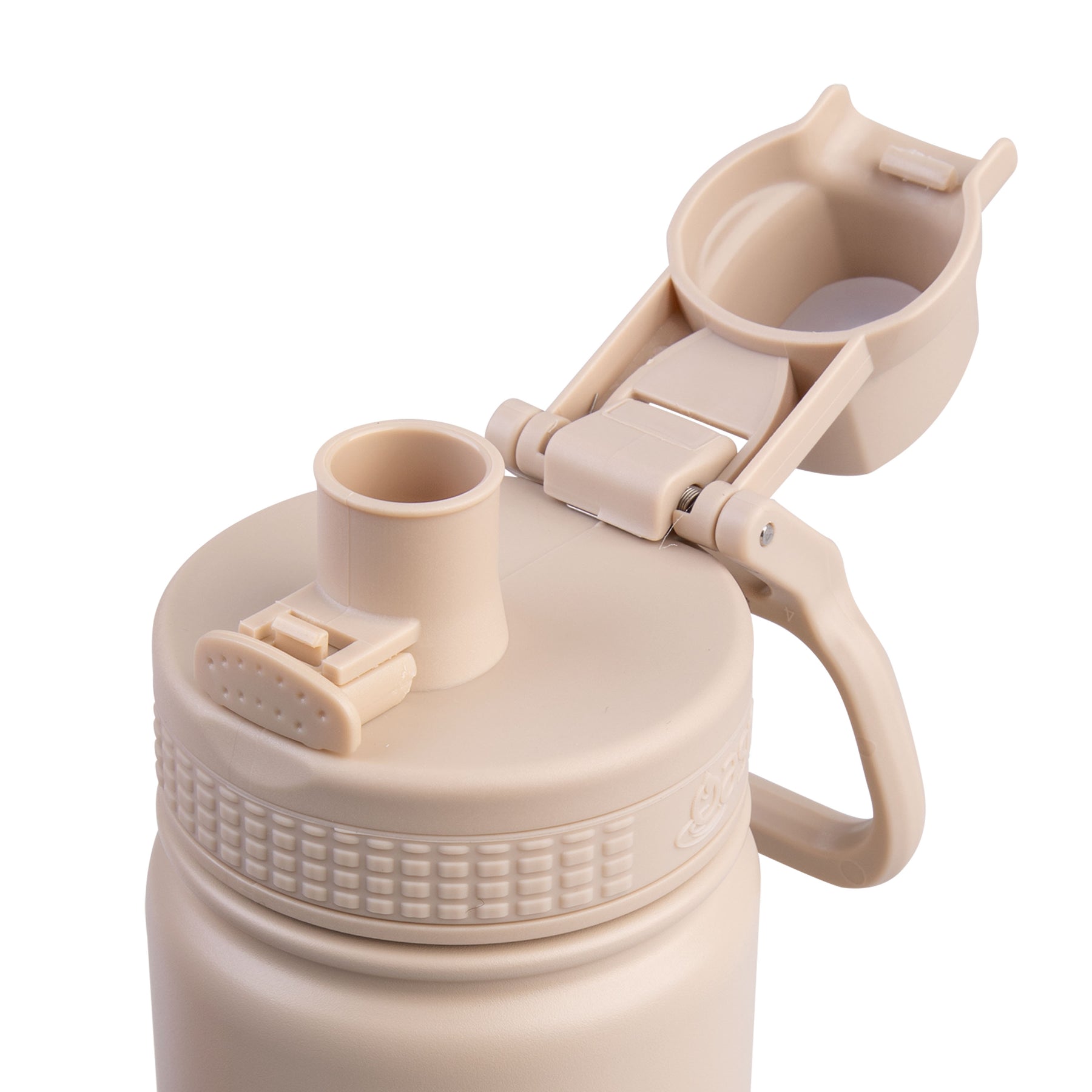 The double wall vacuum insulation minimises heat transfer and condensation, keeping drinks cold for up to 24 hours or hot for up to 6 hours. A quick release cap with a fast-pour spout allows for effortless hydration on the go, while the leakproof silicone seal ensures confidence in your bag or gear.